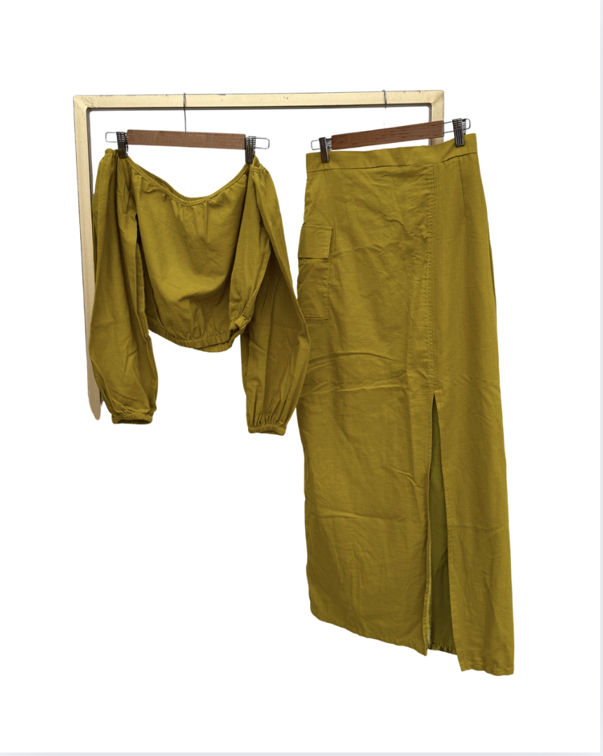 Set verdoso blusa off shoulder